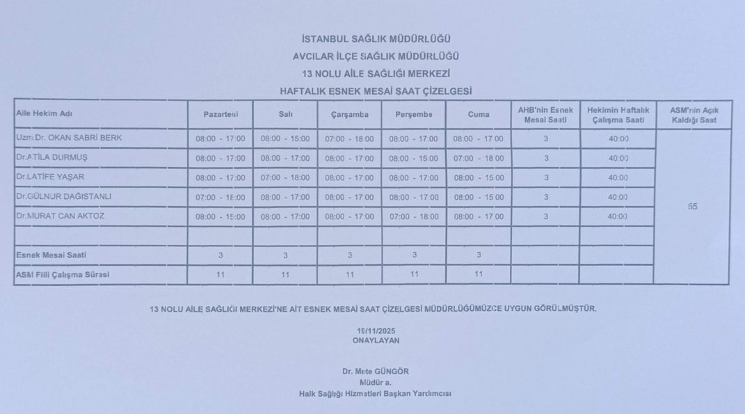 Çalışma Saatlerimiz